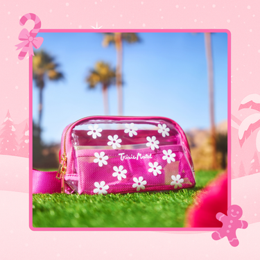 Stay cute and hands-free with the Flower Power Belt Bag! This bright pink beauty features a clear body with white daisies and the iconic Trixie Motel logo—perfect for stashing your essentials while keeping your look playful and polished.